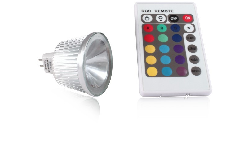LED bodová žárovka 5W RGB je skvělou možností jak vytvořit příjemnou atmosféru pomocí změny barev. Žárovka se ovládá pomocí dálkového ovladače. Můžete si tak přímo zvolit požadovanou barvu, případně vybrat některý z efektů (skokové změny barev, plynulé přecházení barev). Pokud chcete použít více těchto RGB žárovek, lze je všechny ovládat jedním ovladačem. Jeho dosah je přibližně 5 metrů. Díky použité LED technologii se žárovka vyznačuje extrémně nízkou spotřebou a velmi dlouhou životností.